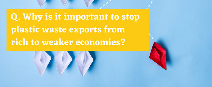 • Plastic waste exports unjustly impacts the environment and communities in the Global South.